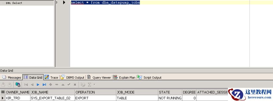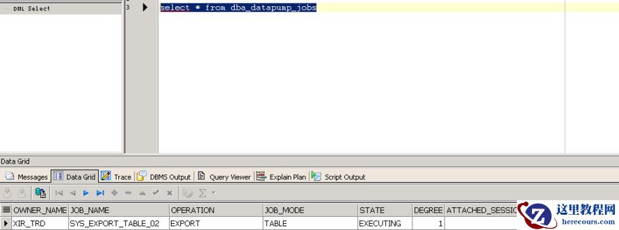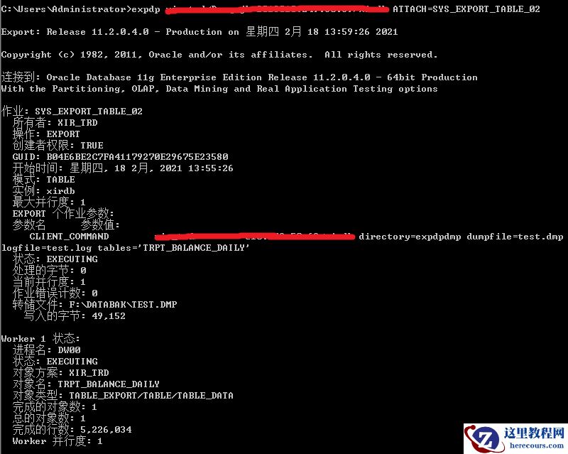 执行命令Expdp *****/***** ATTACH=SYS_EXPORT_TABLE_02 (备注:此为任务名,可通过第二步命令得到),来恢复expdp前台任务。