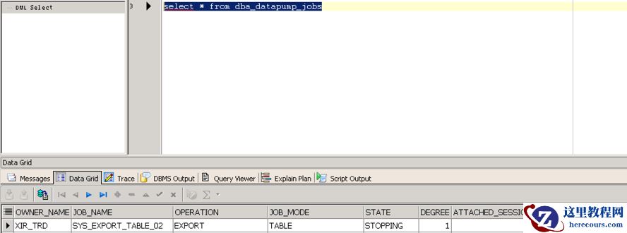 oracle数据库执行数据泵导出时,使用组合键“CTRL+C”来终止导出操作。此时虽然前台的导出任务页面停止了,但数据库内部执行导出任务的session依旧在运行中,观察导出文件也依旧在增长中,此时需要按以下步骤操作终止导出任务。