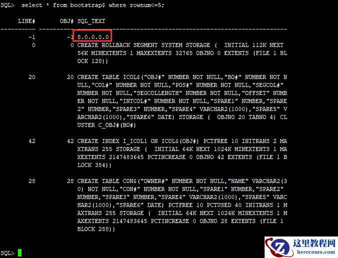 如上图,可以看到版本显示,还可以看到一些创建其他对象的语句,也就是说,该表包含了OBJ$,C_OBJ$,TAB$等基表的创建语句,本次问题就是在创建完成后无法扫描该表,。其他基表无法创建报错