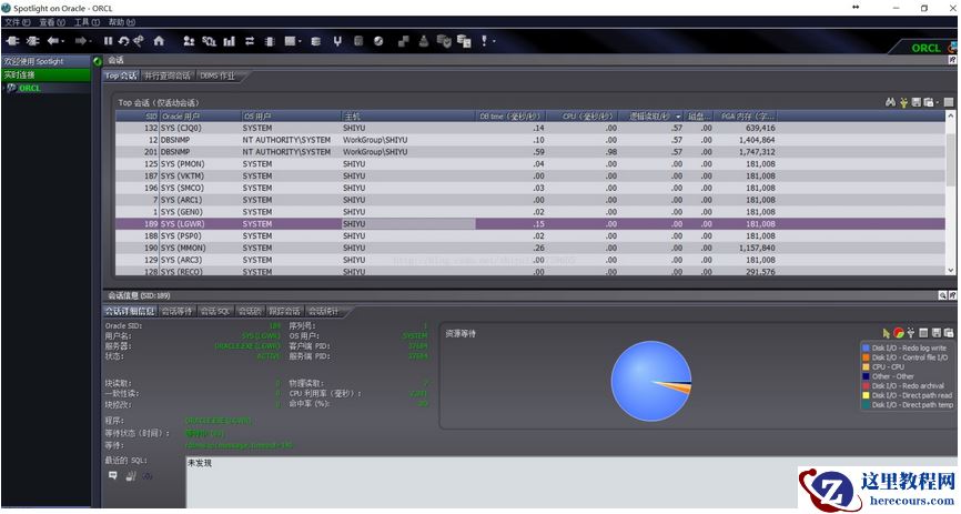 通过topSession面板可以查看当前哪个session当前占用了大量的资源,以此定位数据库问题。这是主从式的面板,单击上部列表,会在session Information中显示该会话的所有信息。
