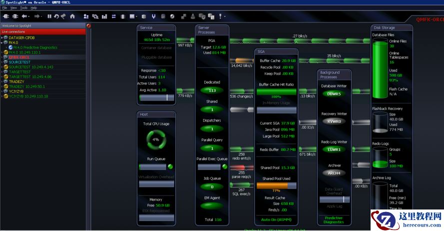 6.磁盘存储面板:显示主要数据库文件的情况(控制文件除外)、