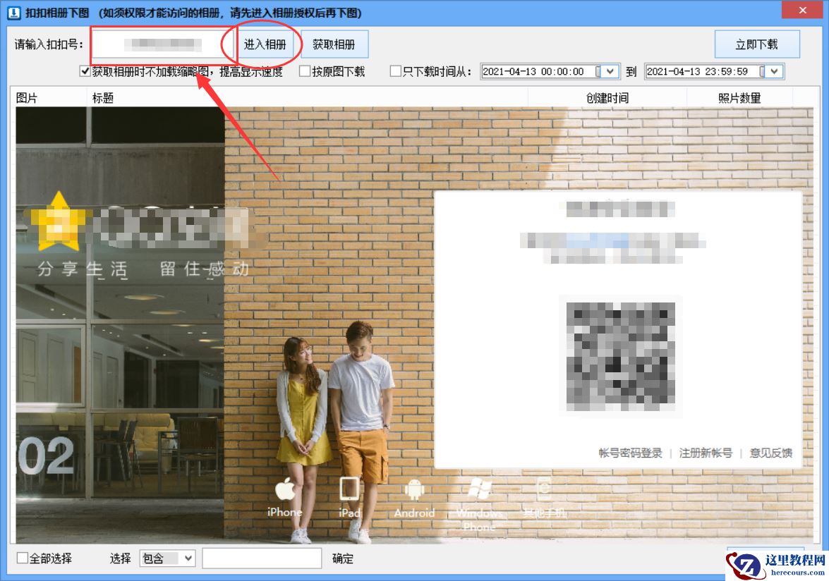 随后我们就可以看到相册下载功能界面。