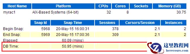 可以看到,在60 分钟的物理时间中,DB 运行超过4000 分钟,CPU 已经被100% 消耗。
