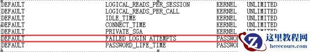 2. 调整密码登录失败的参数,无论是从安全角度考虑还是从排查问题角度考虑,我们都建议客户将DEFAULT FAILED_LOGIN_ATTEMPTS PASSWORD UNLIMITED 重新设置为10 次。