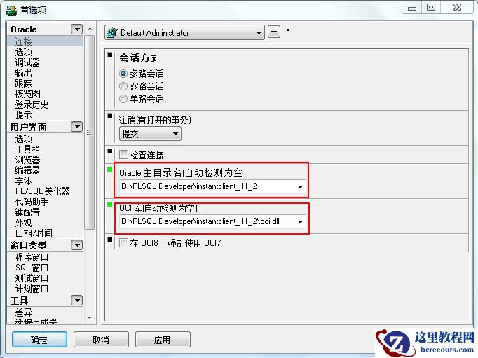 注意:例子仅仅是个例子,ORACLE主目录取自配置的环境变量.OCI库即在ORACLE主目录下的oci.dll文件.