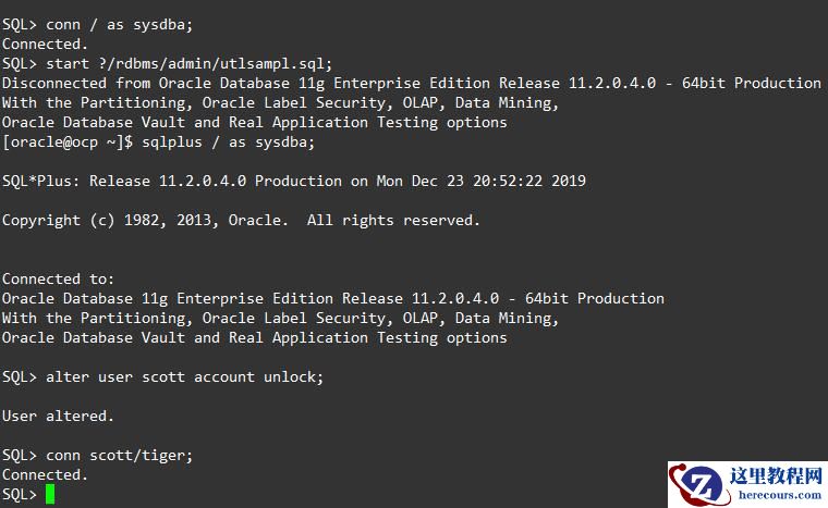 在oracle 数据库中,当缺少scott用户或因操作演于scott用户,需要进行恢复scott用户到初始状态时,该如何操作?