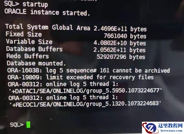 经过分析 判断redo 日志损坏 处理方法如下 alter database claer unarchived logfile group 9;
