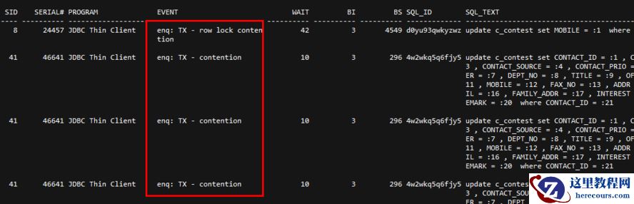 5 经过思考,此问题以前从没有发生,此次报错发生在检修后第二天,故认为有可能是应用更改业务程序引起的ORA-600错误,联系应用,将C_CONTEST表反馈给业务开发,业务人员停止c_contest表相关的JOB,等待2分钟后,数据库的ORA-600报错不再持续报错,且数据库的TM、TX锁消失,故认为是业务程序触发Oracle数据库的BUG,导致的频繁报ORA-600错误。