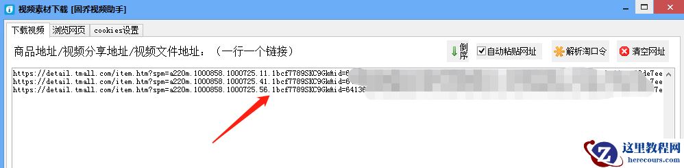 二:打开天猫网站,在天猫网站找到喜欢的产品视频,找到之后复制网址,不需要粘贴,网址已经自动粘贴到工具内,一行粘贴一个,可一次性粘贴几十个,甚至几百个产品地址。