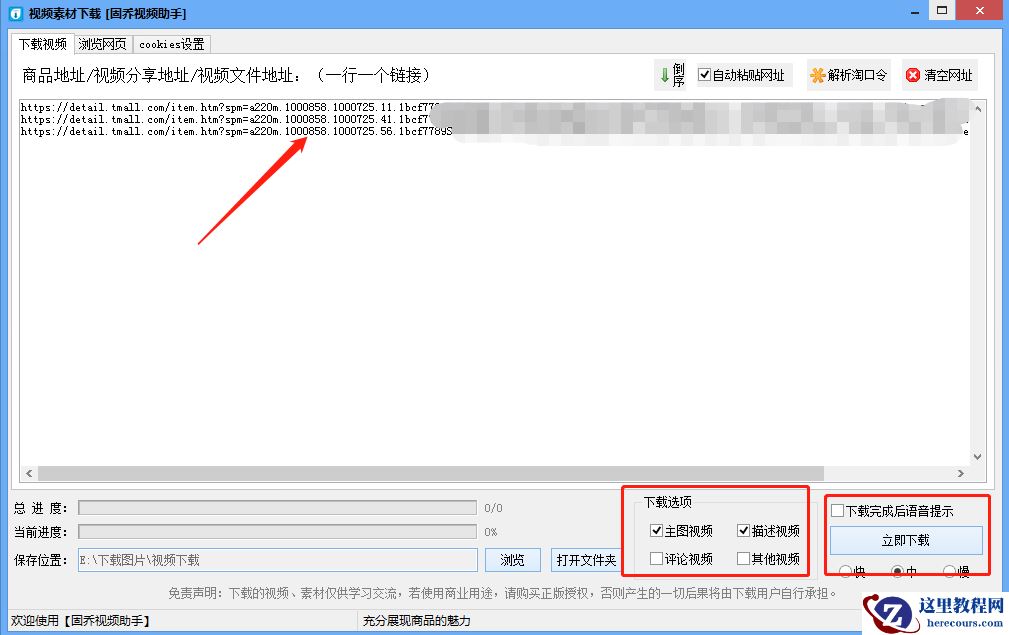 我们要提前将固乔视频助手下载到电脑,打开固乔工作室网站就能免费下载,下载后使用这款工具下载天猫商城产品视频速度非常快,而且可一次性下载多个产品视频,具体下载效果如下: