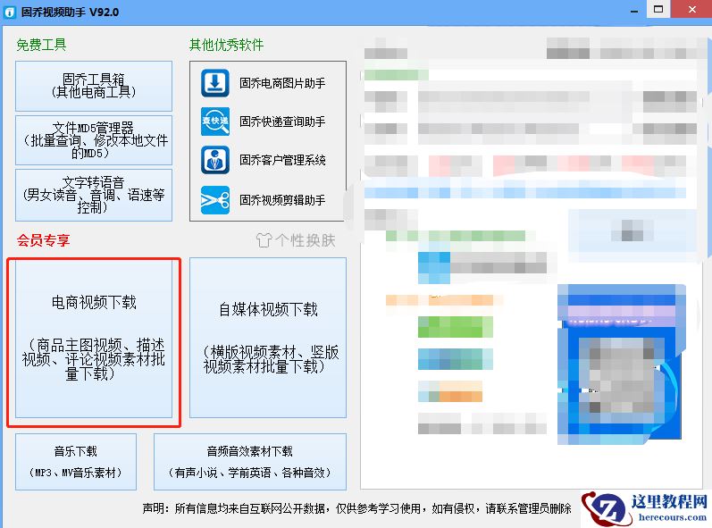 一:打开固乔视频助手,在主页面的功能设计非常简单,点击页面上的【电商视频下载】,然后在弹出的页面找到【自动粘贴网址】,在网址前面打勾即可。