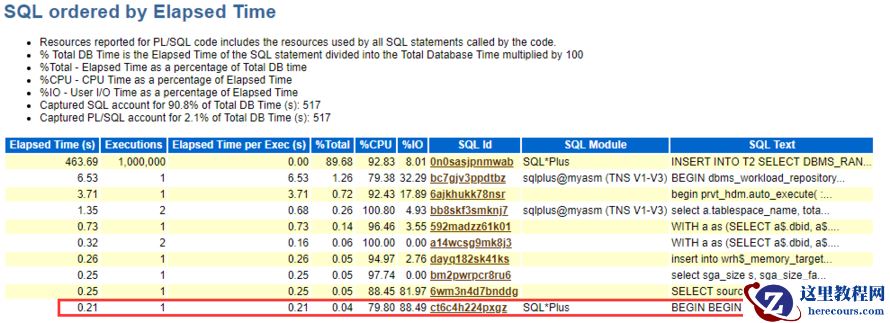 通过上边我们可以看到,测试虽然无法完全公平,但两条语句都在相对公平环境下进行,因频繁提交,awr事务数每秒703个,批量提交并无此统计。频繁提交会更多的消耗数据库及系统资源,如回滚段、表,频繁提交会出现等待事件"