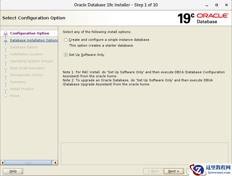 将oracle安装包放到oracle用户的$ORACLE_HOME目录下解压,并图形安装(仅安装软件)