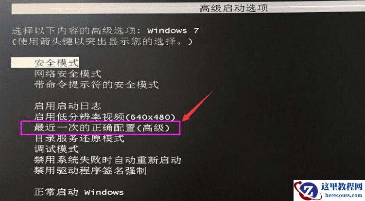 方法1:开机过程不断地按F8,出现启动菜单时选择“最后一次正确的配置”。如果此方法不行,再尝试选择“安全模式”。