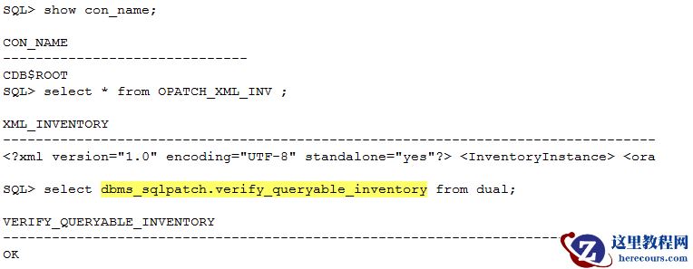 dbms_sqlpatch.verify_queryable_inventory from dual;,无论是CDB还是PDB依然是