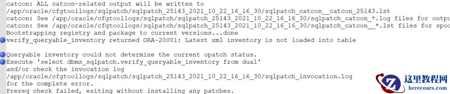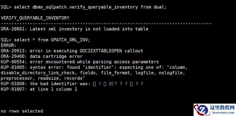 select dbms_sqlpatch.verify_queryable_inventory from dual;返回错误信息:
