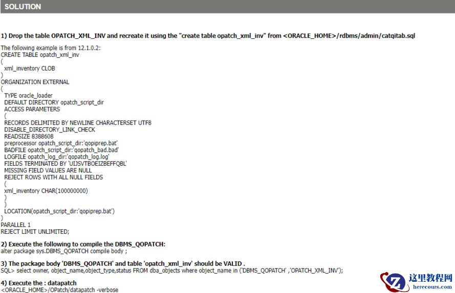 Doc ID 2302799.1提示的问题处理方法是重建OPATCH_XML_INV表,重建过程如下: