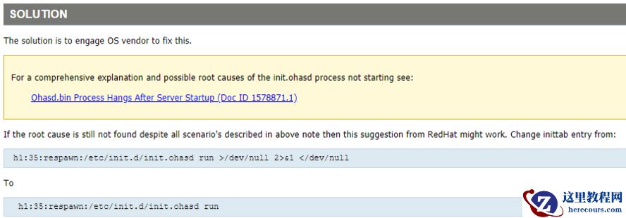 Linux: OS "init" process does not start init.ohasd in inittab (Doc ID 1591775.1) To BottomTo Bottom