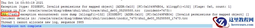 进一步查看告警日志发现有ORA-07445 k11cqgf()+132,查看oracle mos确认是11.2.0.1的bug 9470768(Doc ID 9470768.8)
