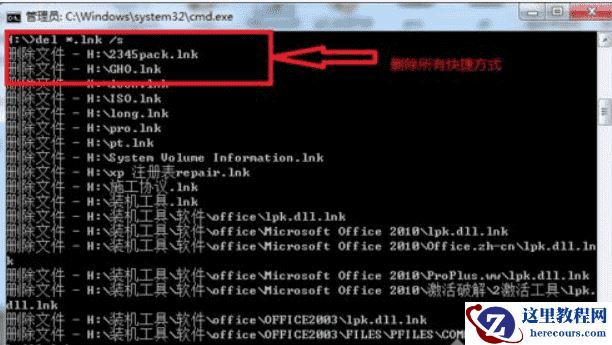 4. 输入命令:del *.lnk,就可以删除多余的快捷方式了。