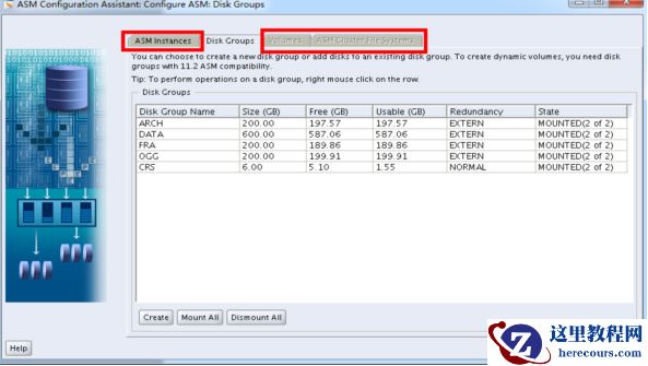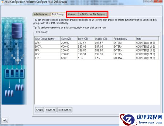 1 不能创建acfs文件系统,asmca图形界面如下: