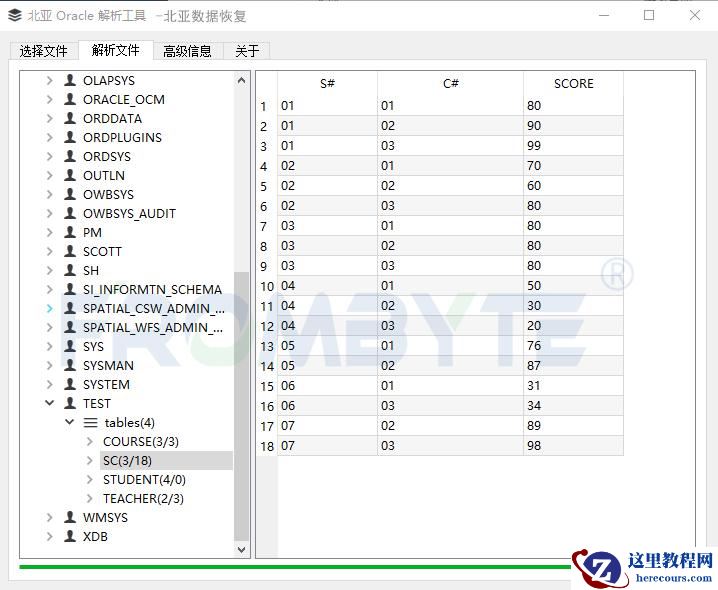 5、使用北亚企安自研的oracle数据库解析工具解析所有数据库文件中的数据记录,然后按照用户导入到新的oracle数据库中。