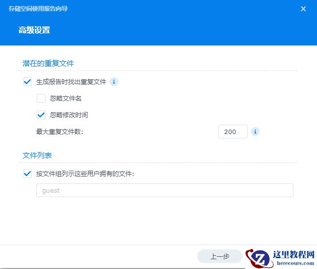 选择生成报告时找出重复文件