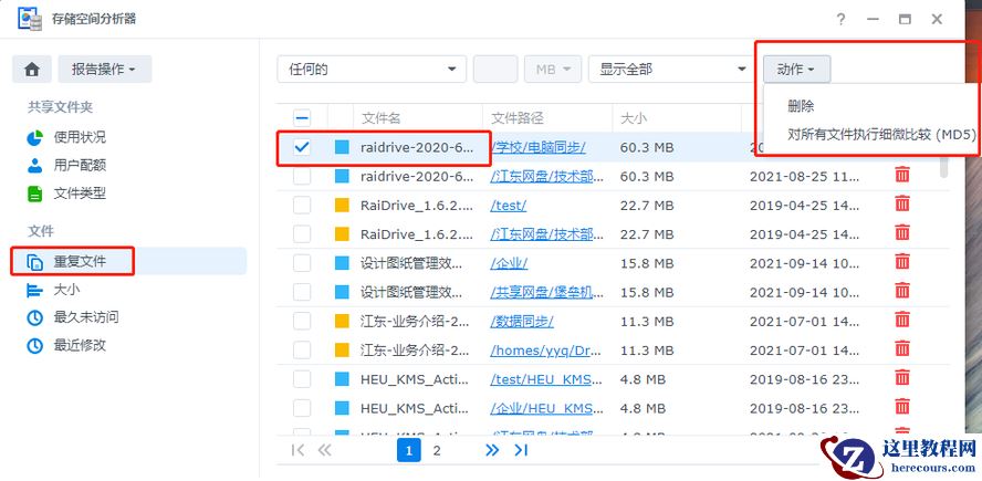 可对重复文件进行