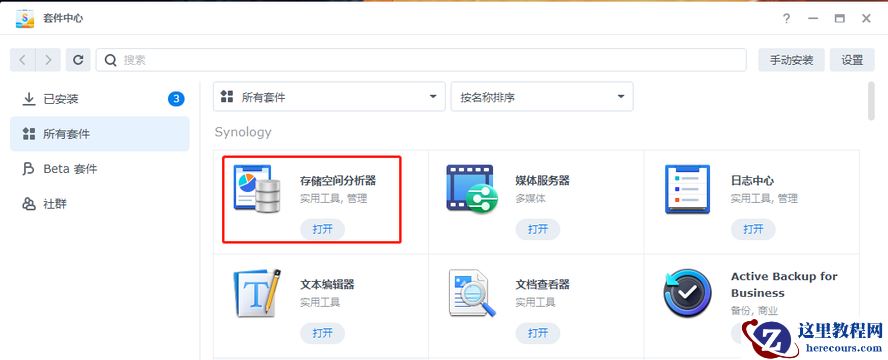 “套件中心”——“所有套件”——安装 “存储空间分析器”