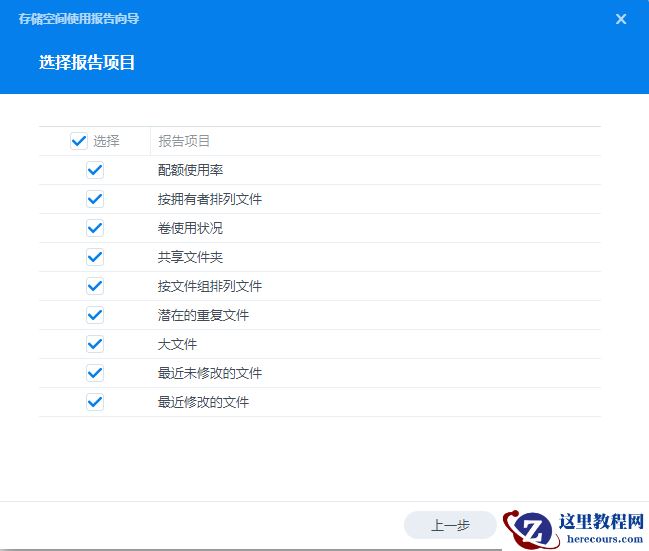 选择报告项目,默认为全选