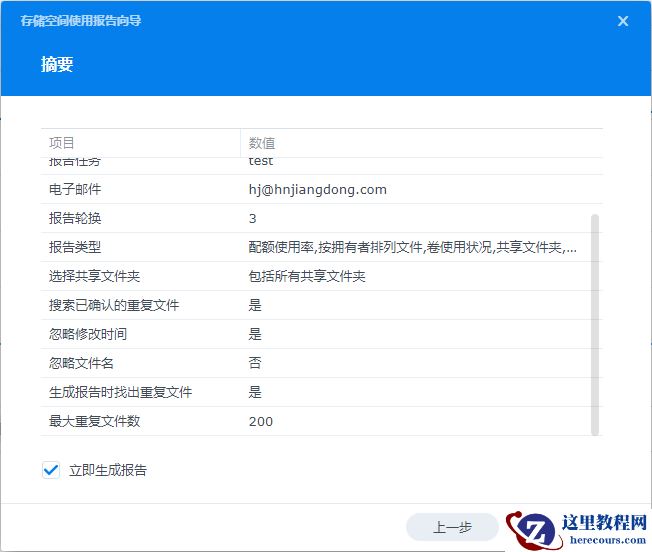 勾选立即生成报告