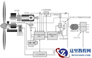 图5 风电场低电压穿越要求的规定 对于不同的欧美国家电网公司,其规定的低电压的跌至幅度和穿越时间也存在差异,英国为15%和140ms,德国为15%和625ms,丹麦为25%和100ms,西班牙为0%和500ms等。 2.4 目前双馈式风力发电机组并网系统
