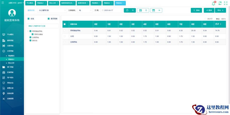 将电耗进行逐时、逐日、逐月、逐年统计。统计数据采用饼图、柱状图、线图、区域图等各种图形展示方式,直观反映各项统计数据的数值、趋势和分布情况。