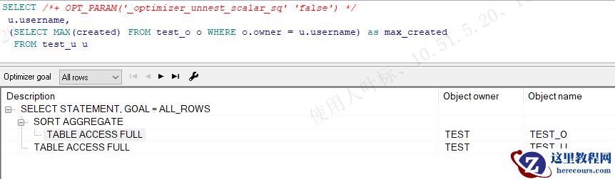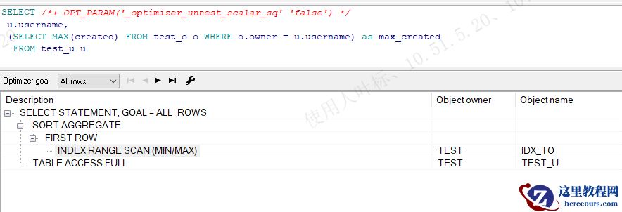 影响执行计划改变的参数_optimizer_unnest_scalar_sq,可以通过/*+OPT_PARAM('_optimizer_unnest_scalar_sq' 'false')*/ 的hint 来修正,