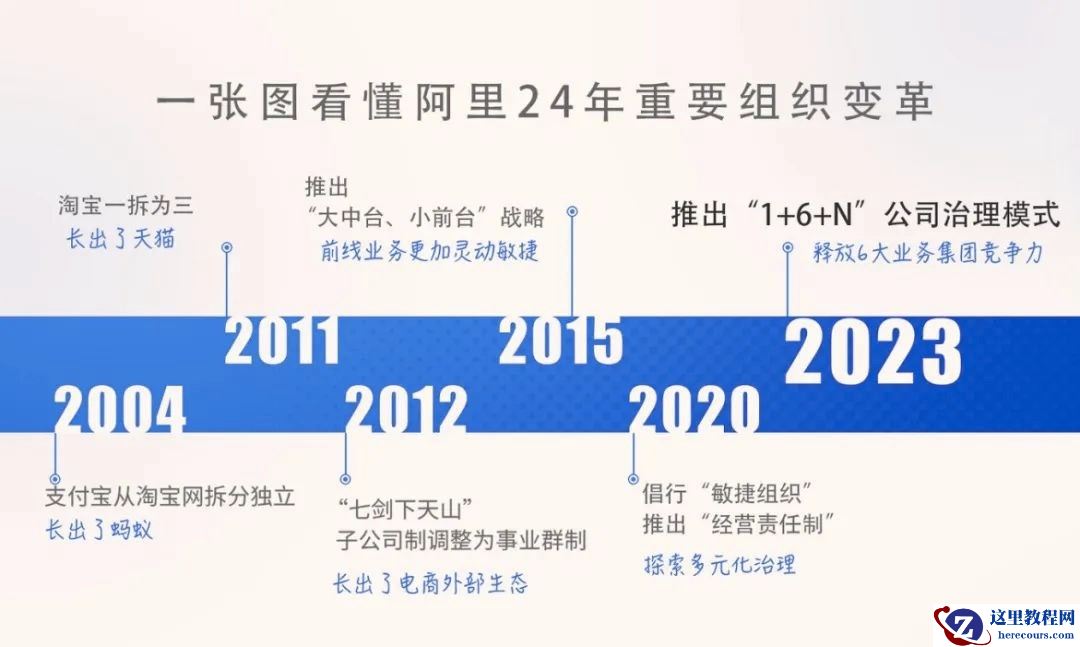 (阿里“1+6+N”变革详情。图源:中国企业家杂志)目前,阿里六大业务集团正式成立董事会,着手将组织变革做深做实。如此多的新进展,既是阿里对这次改革的信心,也表达了对旗下业务面对市场的信心。事实上,从各业务的表现来看,它们也确实已有能力独当一面。举例来说,财报披露,阿里云智能在2023财年总收入为772.03亿元,经调整EBITA利润为14.22亿元,同比增长24%,连续第二年实现盈利,这是一个可靠的成绩。Gartner 2022年全球云计算IaaS市场排名显示,阿里云全球第三、亚太市场第一。张勇在面向阿里云员工的全员信中提到,希望阿里云智能同学继续保持创业心态。菜鸟、盒马和国际商业等业务同样如此,已经形成了坚实的业务基础和可持续的成长模式。菜鸟今年1-3月实现了外部营收同比增长18%的成绩,国内物流、国际物流、城乡末端、物流科技和物流地产五大核心业务板块均具有行业优势。财季内,包含Lazada、速卖通、Trendyol和Daraz的国际零售商业订单量整体同比增长15%,收入同比增长41%,国际商业也已经成为阿里业绩增长的新引擎之一。回顾阿里成长史,阿里一直是一家不断自我变革、自我创新的公司。2015年的敏捷组织和中台战略,回答了互联网公司如何用基础设施共享提升作战能力的问题;2021年底的“多元化治理”体系,初步释放了每个业务板块的组织活力,并实际影响着业务的落地成效;今天的持续变革,是延续也是升华。如今各业务板块需要跟随市场变化进行更敏捷、更高效的业务变化,如果还将最高决策权始终攥在阿里手中,沿用传统模式,将很难在每个垂直领域的精准竞争中胜出。“把大公司做小”,这是张勇开出的药方。好的生产关系的调整,能够释放生产力。不同时代,呼唤的是不同的生产关系。组织变革-生产关系变革-业务创新这个十分具有阿里特色的链条,恰好像“永远不变的是变化”这句格言一样,反映出阿里总是在看似“稀松平常”的变革中,完成了自我迭代。 迈入生产关系变革大周期公司经营与市场周期相顺应,阿里的每一次组织变革,都是顺应市场形势进行的生产关系调整。也正是因为这种内在的时代性,阿里的新战略,总是能踩中行业的痛点,从而成为平台公司竞相参考的风向标。一个让人记忆犹新的词语是“中台”,2015年12月7日,张勇提出“大中台,小前台”战略,当时互联网公司组织在高速扩张后开始出现臃肿,又急需实现线上线下不同业态的渗透和协同,快速反应和基建能力都是必选项。大中台打通了各个业务体系,帮助阿里迅速培养出盒马、淘宝直播等今天看来意义重大的业务。于是,阿里的成功行动也成为了当时行业的一部“参考手册”。2018年底,百度进行组织架构调整,打造技术中台成为了它的战略目标之一,同年京东两次进行组织调整,加入“中台”组织架构大家庭。2019年,腾讯成立技术委员会,推动“开源协同”和“自研上云”,全面启动中台战略。此次“1+6+N”,充分体现了阿里对业务单元灵活自主的重视,更符合当前市场需要突破创新的趋势。因此,我们也看到,在阿里宣布对自己开展变革后,行业中仍然有跟随者采取了类似行动。张勇本人曾经总结:“当我们问一个组织要速度的时候,我们应该让业务分开快跑,更应该把业务变成纵向的,必须独立的建制往前跑,策马狂奔。当我们问整个组织要效率、要积累、要沉淀的时候,要把有些东西横过来,让整个支撑体系包括商业沉淀能够有办法共享给其他团队。”这说明如何拥抱变化才是企业治理的核心课题,也是最难的课题。实际上,平台经济如何高质量发展、超大型企业如何高效治理,在全世界都是大的课题。2015年,谷歌启动企业架构重大调整,意图提高主业——搜索引擎及其他核心业务的专注度,同时让新兴的高潜力业务可以获得足够的独立成长,从而有机会创造未来增量。于是,我们看到了Alphabet的成立,谷歌由巨无霸变成Alphabet的全资子公司,和Waymo等充满风险的业务成为“兄弟”。谷歌CEO拉里·佩奇当时说,科技行业必须迎来革命,不落伍就必须有点不甘于慵懒的精神。这和今天阿里的变革期待不谋而合,要突破业务,先突破自己的局限性。而从变革后的表现看,谷歌的大胆尝试无疑是成功的:Waymo之类的新兴业务获得了外部独立融资,缓解了母公司的输血压力,而核心业务的业绩得到了提高,最终令公司整体估值水涨船高。招商证券的对应研究指出,“谷歌宣布重组当日,股价盘后大涨6%,市值增长约260亿美元;宣布重组后一年内,股价涨幅17.1%,高于大盘一年内的涨幅(纳指为4.3%,标普500为5%)。”可以想象,阿里云的完成分拆独立上市、菜鸟盒马启动上市、国际数字商业启动外部融资,也会是一个估值优化的过程。彼时谷歌将自己化作子公司的行为,因为大胆曾招致非议,但市场整体依然认可变革的重要性。阵痛、质疑是短暂的,抓住一个发展机遇才能为长期发展奠基。20余年时过境迁,阿里并不惧怕变革路上可能出现的艰难险阻。方向对了,一切正轨都会导向成功。这是阿里的哲学,更是商业的智慧。来源:美股研究社