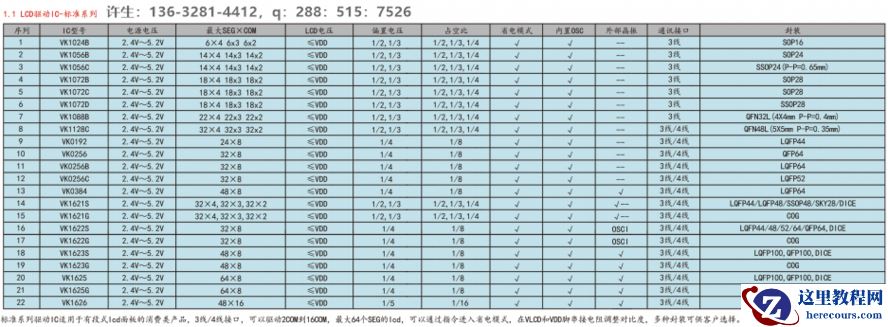 ▪ VK0192M 2.4V~5.2V 24seg*8com 偏置电压1/4 LQFP44 省电模式