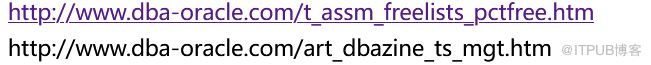 MSSM:Manul Segment Space Management手动分段空间管理这种技术的具体实现方式是通过在段头(Segment Header)分配自由列表(freelist)来管理Block的使用,简单一点,可以把自由列表想象成一个数据表,Oracle依赖一系列的算法通过向自由列表中加入或移出Block来实现段空间管理。当向一个对象中插入数据时,假设PCTFREE=20,PCTUSED=40,这就表明当一个Block的空间使用率达到了80%时,这个block就不再允许被用于新增数据(insert),而保留下来的这20%的空间则被预留为行更新(update)所可能需要的空间扩展,此时这个Block就从freelist上被移除;当这个Block中有数据被删除(delete)时,空间不断被释放,当空间使用低于PCTUSED参数设置时(此处即为40%),这个数据块块才会重新被加入到freelists中,加入freelist后这个Block又可以被插入新的数据缺点:如果一个段的操作非常频繁,那么很多用户就会同时请求访问freelist,并对freelist进行修改,这就很容易产生竞争。对于表来说,缺省的freelist为1,这就很容易引发竞争,虽然可以通过增加freelist的方法缓解这种竞争,但是我们已经看到这种管理方式存在的缺陷ASSM:Automatic Segment Space Management自动分段空间管理只有在Locally Managed Tablespace中可以使用ASSM,system tablespace不可以使用ASSM只有一个关键的SQL参数控制空间分配: PCTFREE。insert通过扫描位图来查找可用的block,即使block的可用空间低于PCTFREE,也不会从位图中摘除,因此PCTUSED参数将不再需要;而PCTFREE参数,仍然需要它来指示需要保留多少空间给后续的update导致的行数据增长使用。至于freelists和freelist groups参数在ASSM中都无效了。原有的freelist被位图所取代,通过位图能够迅速有效地管理存储扩展和剩余区块(free block),因此能够改善段存储管理的本质。优点:1.自动段空间管理(ASSM)是一种更简单、更有效的管理段内空间的方法。它完全消除了为表空间中创建的模式对象指定和调优pctused、自由列表和自由列表组存储参数的任何需要。如果指定了这些属性中的任何一个,它们将被忽略。2.Oracle宣称显著地提高了DML并发操作的性能,因为位图数组的不同部分可以被同时使用,这样就消除了寻找剩余空间的串行化。根据Oracle的测试结果,使用位图数组会显著地消除所有对段头的竞争,还能获得超快的并发插入性能Locally managed tablespace 及 ASSM 是11gR2的默认配置。ASSM的缺点:1.全表扫描速度慢:一些研究表明,使用ASSM时,大表全表扫描(FTS)将比标准位图运行更长时间。ASSM FTS表空间始终比自由列表FTS操作慢。这意味着ASSM可能不适合决策支持系统和仓库应用程序,除非将分区与Oracle并行查询一起使用。2.对于大容量并发插入来说速度较慢:许多专家进行的研究表明,使用传统的多个自由列表时,具有大容量批量负载的表执行速度更快。ASSM将会产生影响3.ASSM将影响索引聚类:对于行顺序表,ASSM可能会对索引的clustering_factor产生不利影响。位图自由列表不太可能在物理上相邻的数据块上放置相邻的拖,这可以降低clustering_factor和基于成本的优化器倾向于支持索引范围扫描。ASSM的位图自由列表极大地减少了段头争用,并提高了同时插入的并发性(在一定程度上)。ASSM还消除了在RAC中指定自由列表组的需要。新的dbms_space过程允许DBA查看特定对象中的增长趋势,ASSM在性能/空间利用率方面提供了更好的多实例RAC行为。