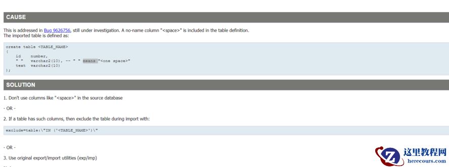4.按mos文档第2条处理方法,排除含有空格字段的表之后问题解决
