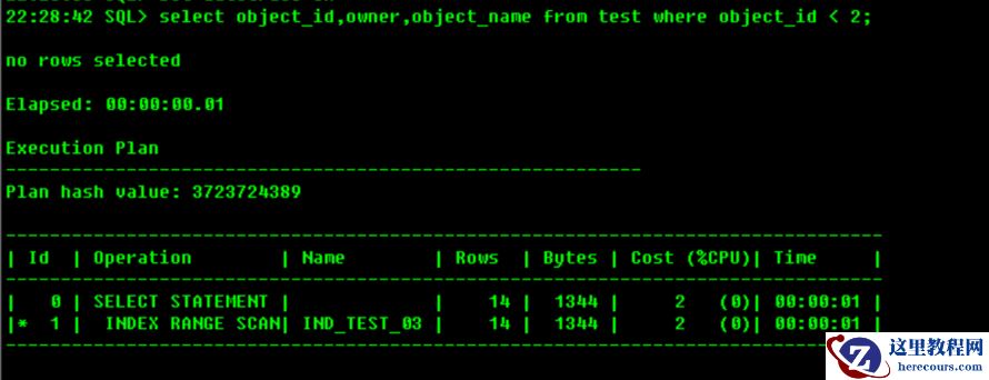 如果想使用索引ind_test_01或者ind_test_03,查询语句where 谓词 必须有object_id 列,如: