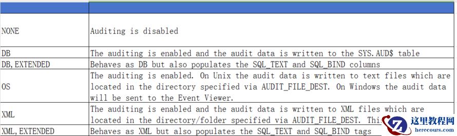 通过将AUDIT_TRAIL参数设置为不同于NONE的值,然后重新启动数据库,可以启用审计。下表给出了AUDIT_TRAIL参数所有可能的合法值: