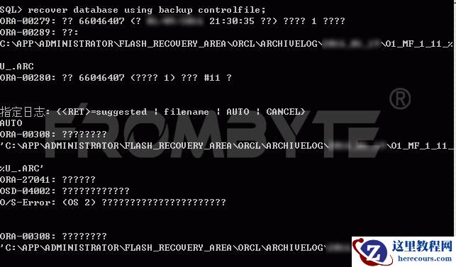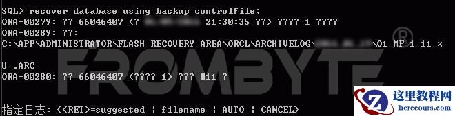 3、查询故障oracle数据库的归档日志,发现归档日志不连续,恢复数据所需要的数据库归档日志丢失,北亚企安数据恢复工程师使用cancel参数进行不完全恢复。