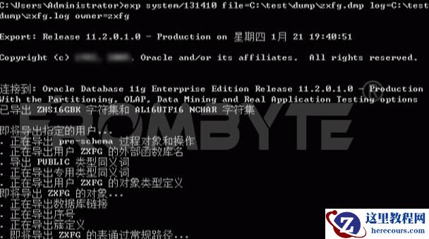 6、创建oracle数据库,在oracle数据库中创建用户,为用户分配表空间,解锁用户并授权,然后将解析到的用户对象迁移到数据库中。7、使用exp或者expdp导出zxfg用户下的所有对象,本例采用exp导出数据,其命令如下:exp system/abc file=C:\test\dump\zxfg.dmp log=C:\test\dump\zxfg.log owner=zxfg