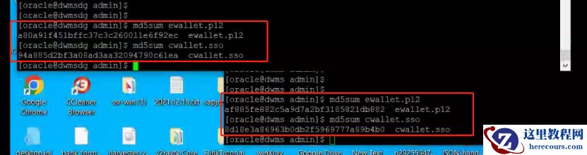 主备库两端,比较密钥文件 ewallet.p12、cwallet.sso 的md5值,意外发现两边文件果然不一致,严重怀疑用户之前拷贝传输存在问题。