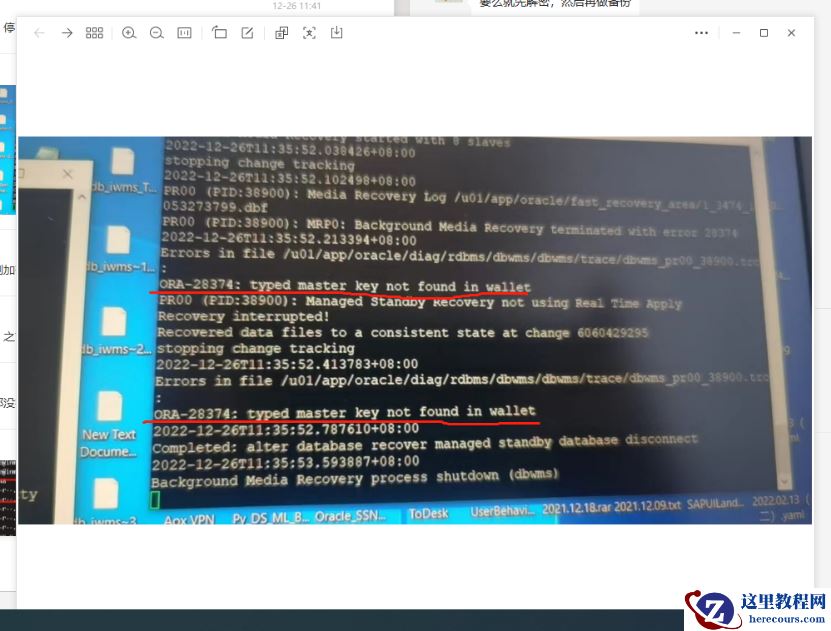 某次,用户一套Oracle 19C数据库DataGuard主备库发生同步异常。通过检查主备库数据库ALERT告警日志,发现在备库日志中,发现了大量的ORA-28374报错。该报错,显然是数据库透明数据加密特性引起。通常,只需要确保TDE钱夹正常打开就行。但是,用户一直反馈钱夹这块没啥问题。因此,需要做进一步分析。 备库ALERT日志信息,具体如下: