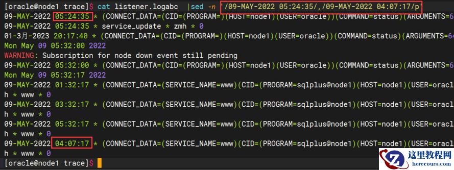 cat listener.logabc |sed -n '/09-MAY-2022 05:24:35/,/09-MAY-2022 04:07:17/p'
