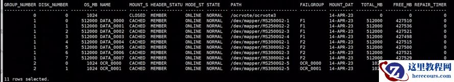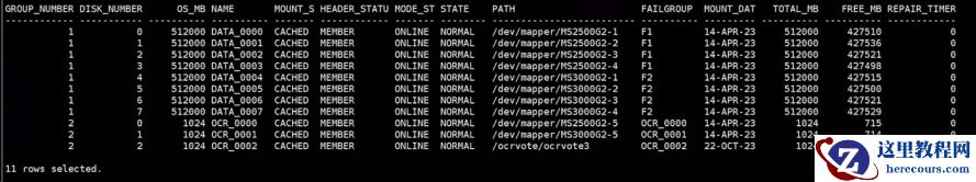 mode_status, state, path, failgroup, mount_date, total_mb, free_mb,REPAIR_TIMER