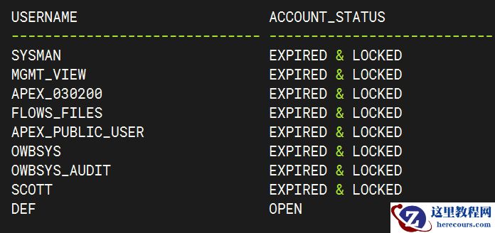 查询用户状态select USERNAME,ACCOUNT_STATUS from dba_users order by created;