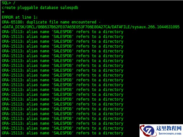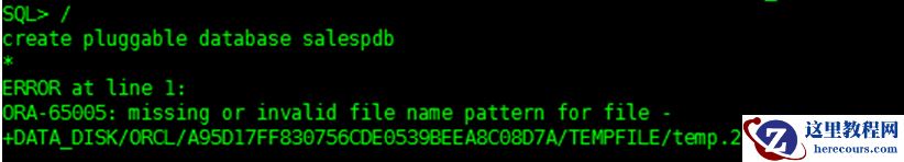 //+DATA_DISK/ORCL/SALESPDB/ 该目录需要事先被创建