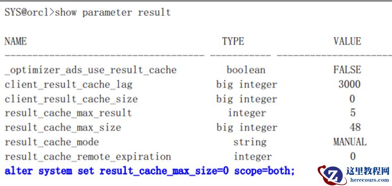 result_cache_max_size:result cache是SGA share pool的一部分,由参数result_cache_max_size控制其大小,
