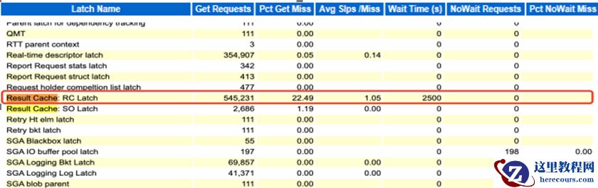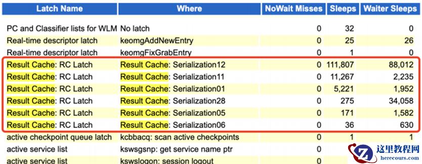 此时可知latch free等待主要在result cache上消耗较为严重